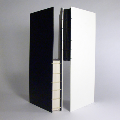 Using the style of Dos a Dos bookbinding, Yuen creates a 'ying-yang' book that highlights the contrast in the two sides. The two seperate sides are also held at different heights to solidify the segregation.